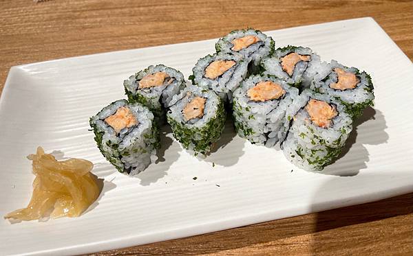 武藏坊日本料理餐廳已經營業許多年,原本靠近羅東火車站前站的公正路,後來搬家到國華國中附近的復興路上,如果有開車的朋友可以停旁邊的付費停車場,家人是這家店的常客,聽說店家搬來這後有更換過菜單品項,我們當天是5人用餐,餐點都不錯吃,下面為當天用餐的餐點龍蝦沙拉壽司~外層有海苔粉包覆