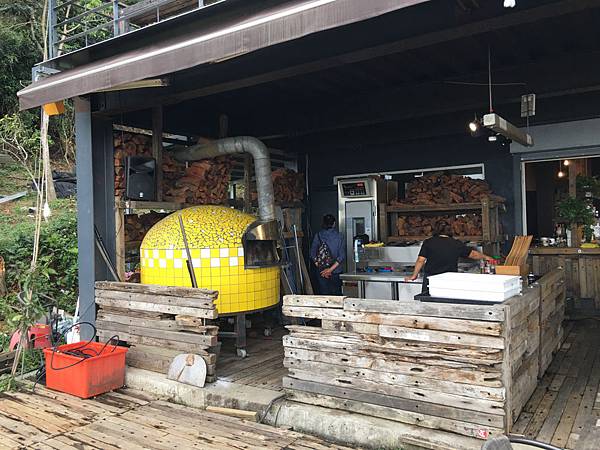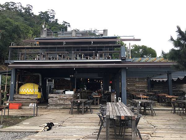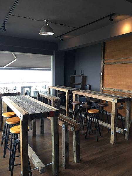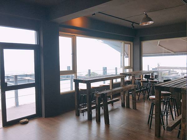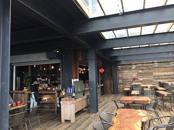 一樓戶外座位區往店家方向拍攝,個人最喜歡二樓的前面座位,但家人有懼高症,覺得坐那壓力大,所以我們就坐一樓外圍區