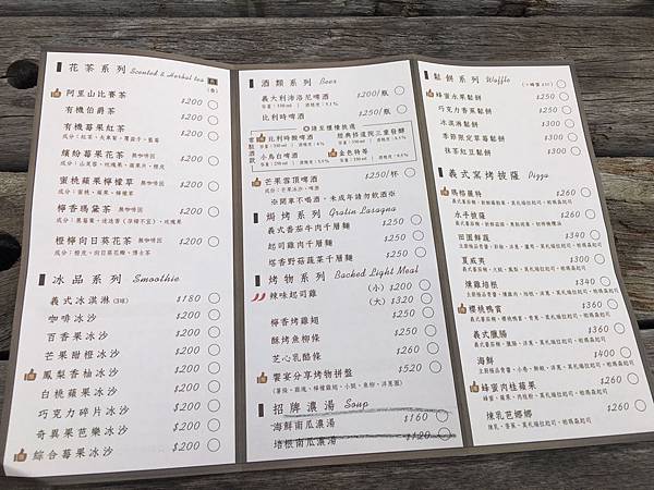 菜單~披薩必點;每人低消300元,沒有收取服務費